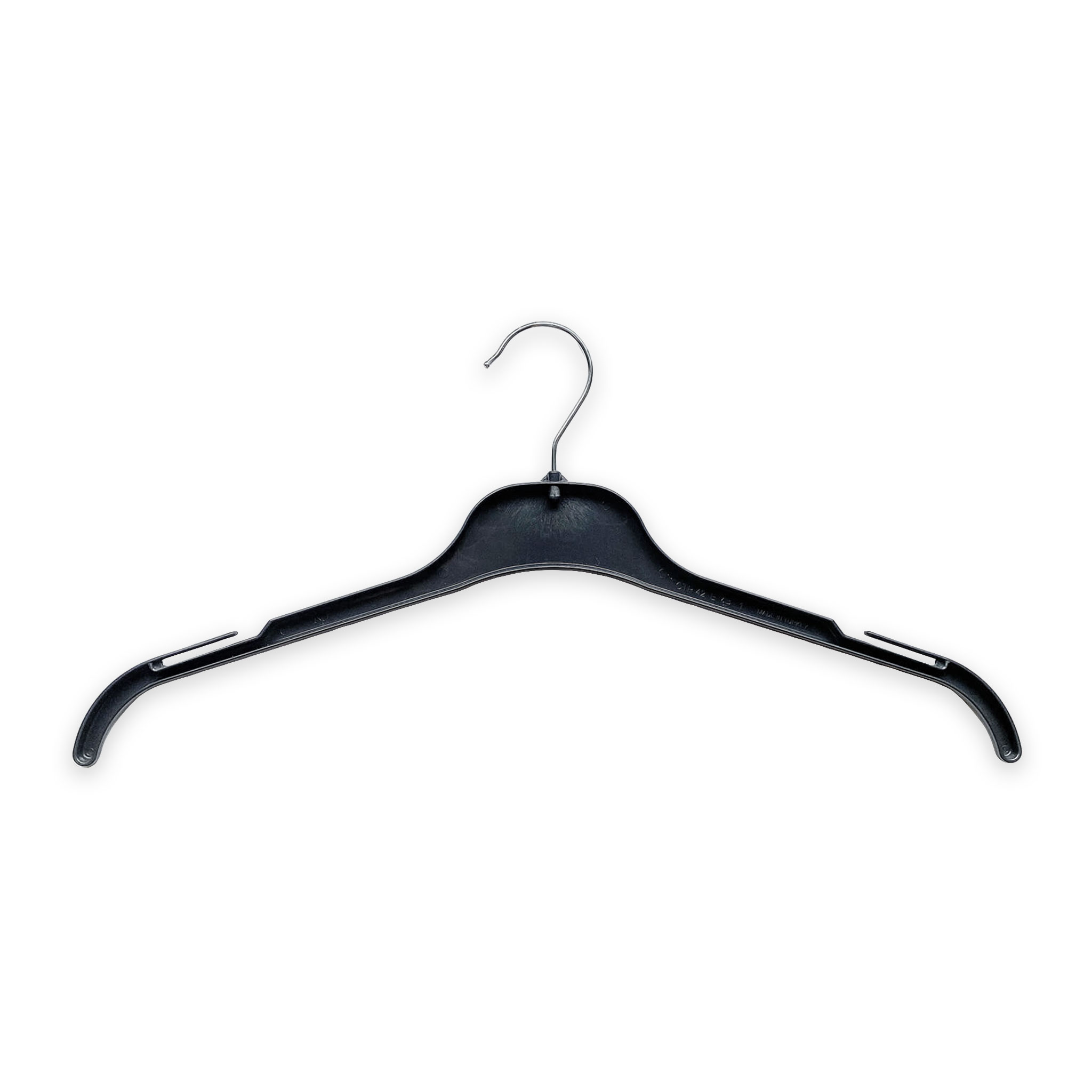 Deze kunststof kledinghanger (blousehanger) van het type CTP en is verkrijgbaar in de afmetingen 42cm, 43cm en 47cm. Let op! De 47cm heeft een volledige body en een langere haaklengte.