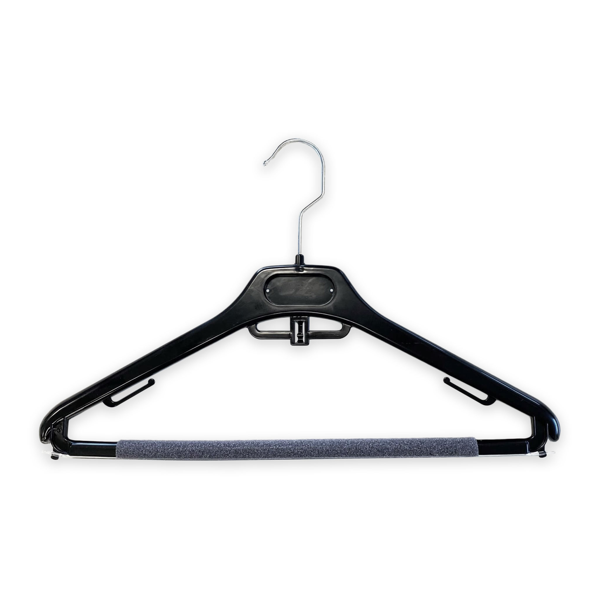 Deze kunststof kledinghanger (broekhanger) van het type SNZ is voorzien van schuim en pantalonstrip en is verkrijgbaar in de afmeting 40cm.